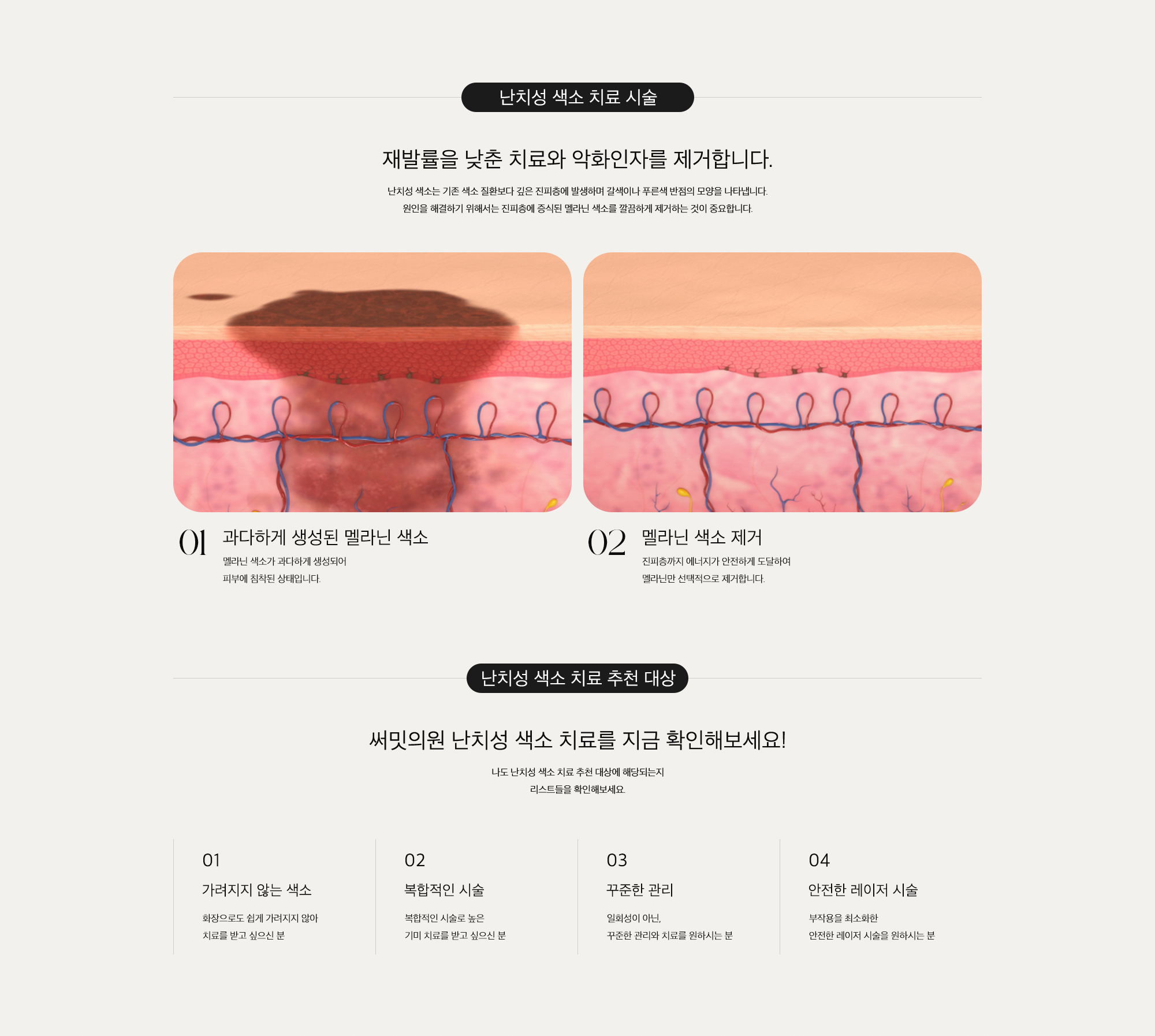 완치가 어려운 난치성 색소의 호전되는 결과를 이끌어 내고 있습니다.